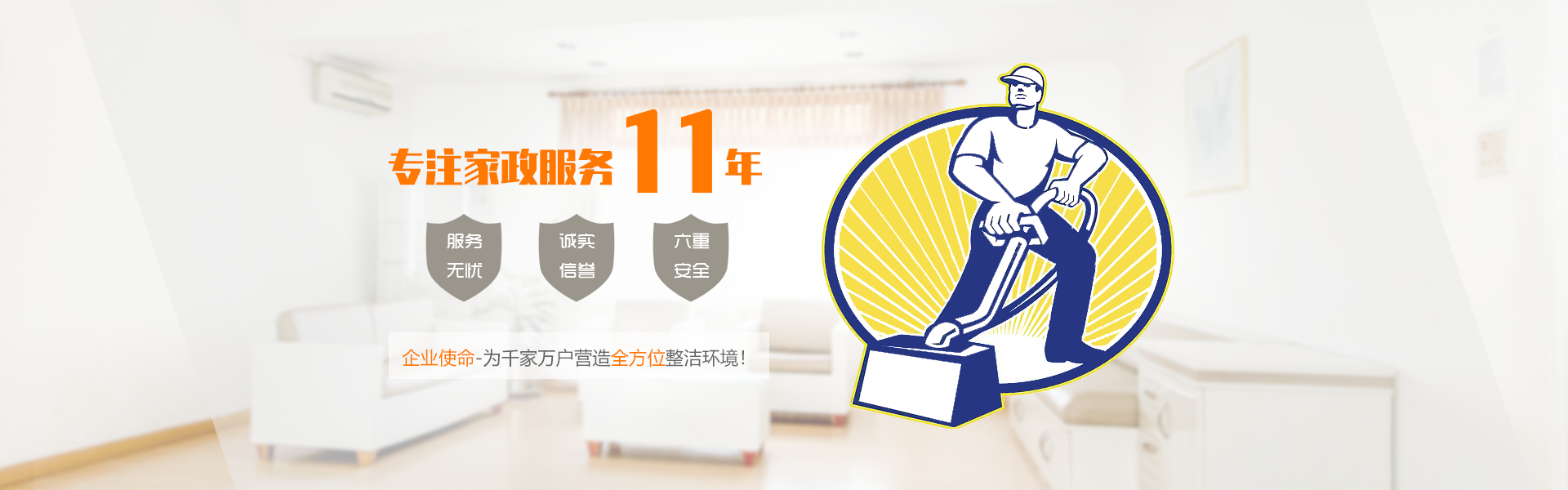 公司有著豐富內(nèi)涵的企業(yè)文化,規(guī)范健全的管理制度、人性化的管理理念,高效運(yùn)作的部門機(jī)制,獨(dú)立完善的服務(wù)系統(tǒng)網(wǎng)絡(luò),引進(jìn)ISO9001:2000國際質(zhì)量管理體系標(biāo)準(zhǔn),成功地運(yùn)作了"誠摯、雙贏"的經(jīng)營模式,以"服務(wù)零投訴率"為企業(yè)標(biāo)準(zhǔn),為廣大企事業(yè)單位及社會(huì)提供快速、便捷的家政保潔服務(wù)。